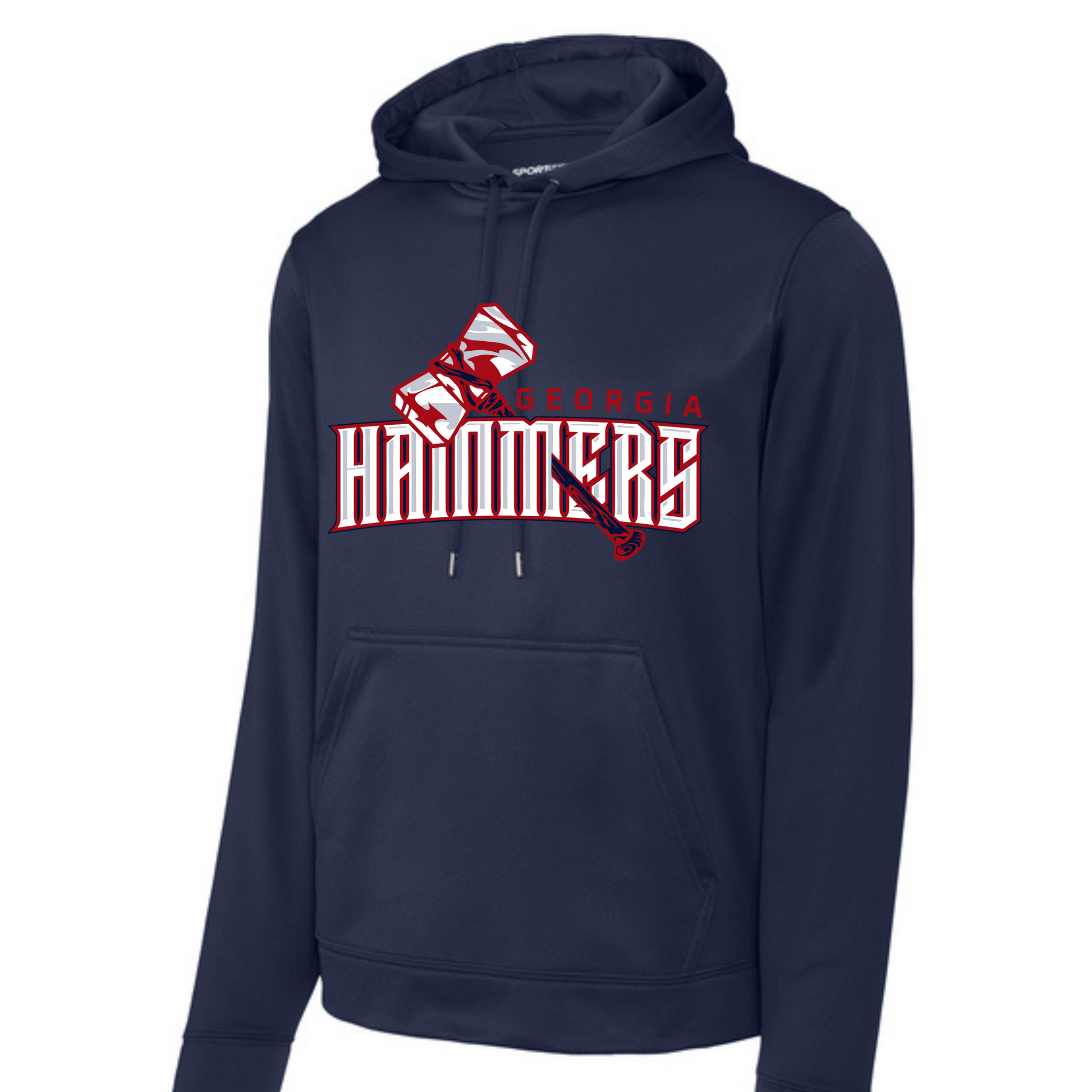 Georgia Hammers arch design. Available in gray, navy or red for Jerseez NuBlend Cotton Hoodie or SportTek Performance Hoodie