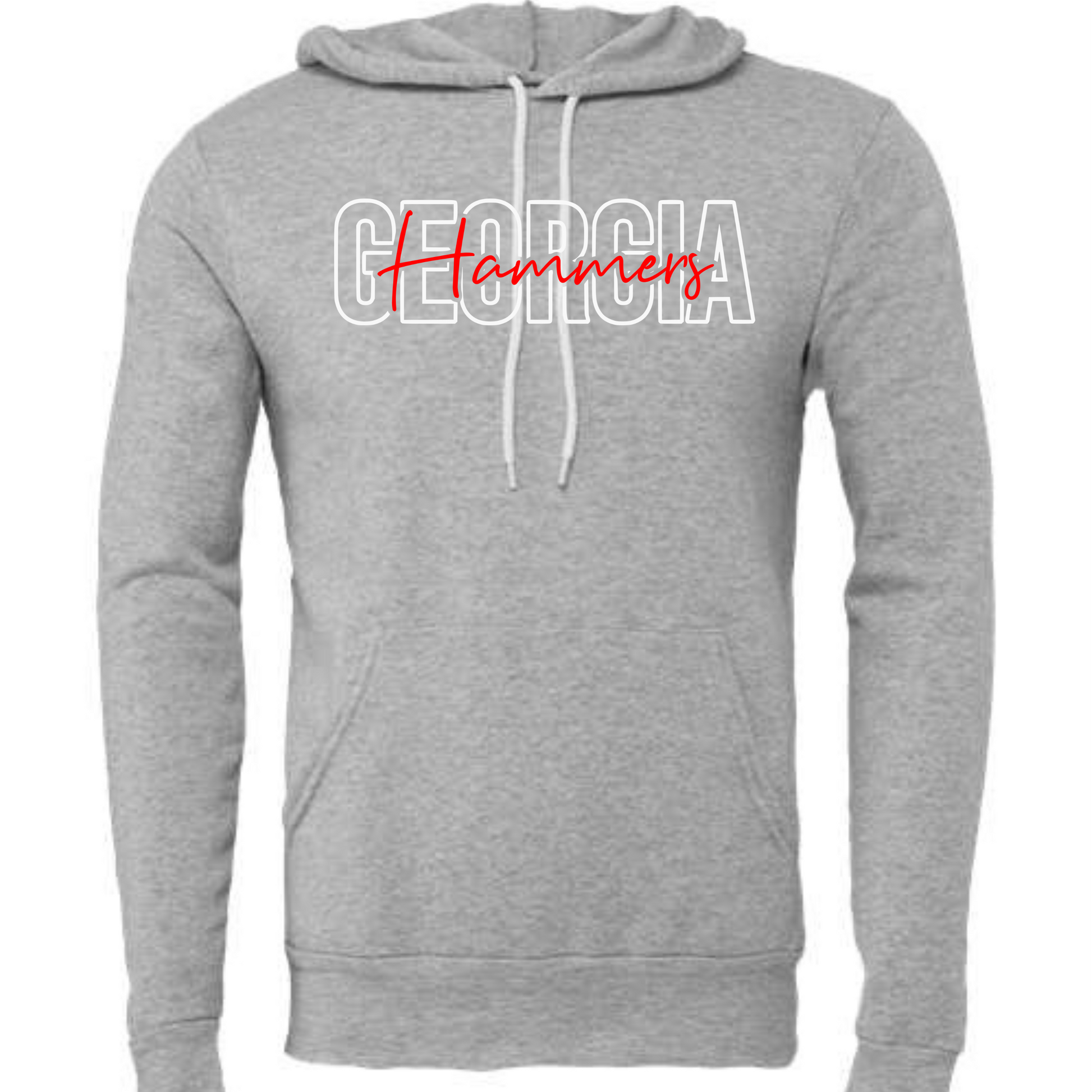 Bella Canvas hoodie with Georgia Hammers outline design. Available in heather navy and and athletic gray.